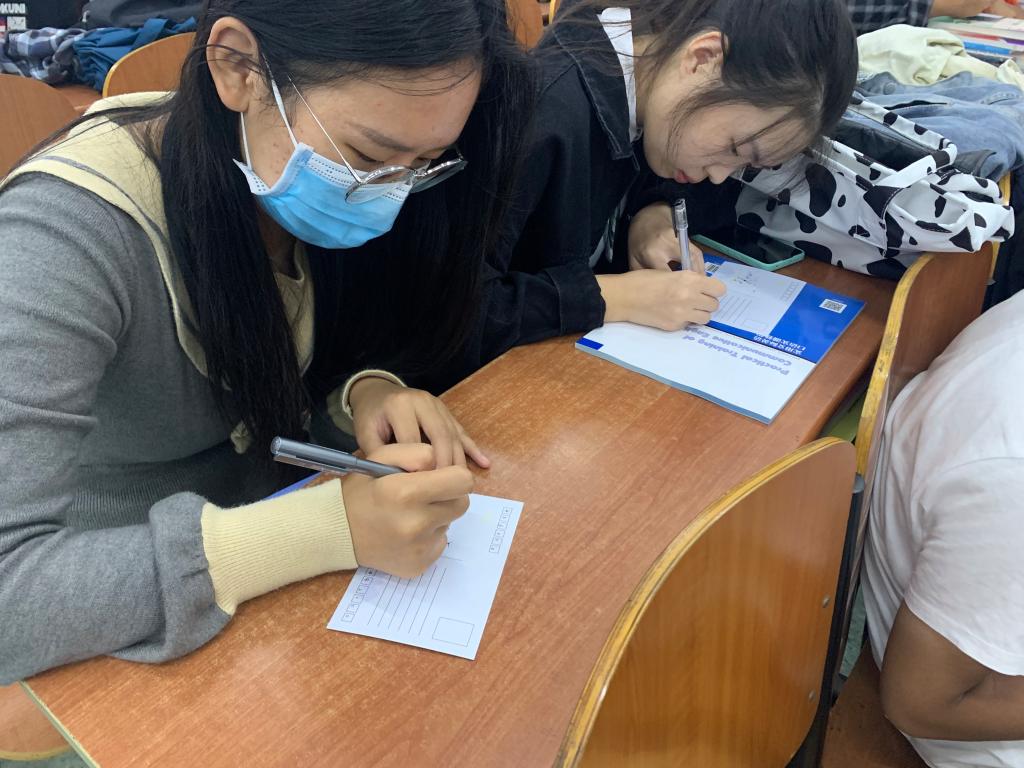 18日下午,2021级新生收到了学院统一印制的中秋主题明信片,大家写下思念与祝福,让明信片捎给远方的亲人和朋友。这些明信片在中秋节当天统一盖上邮戳,载着同学们的祝福,寄向远方。19日下午,学院还组织所有中秋假期留校新生在5209、5109教室集中观看了青春励志电影。