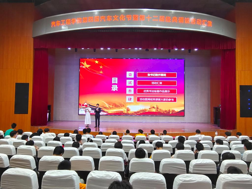 新闻网讯(通讯员 梁军萍)为充分展示beat365官方网站学生活动特色,传承和弘扬中华民族优秀传统文化,激发全社会对中华优秀文化的学习和热爱,增强民族自豪感和文化自信心,提升在校大学生的道德素养,6月1日晚,beat365官方网站第四届汽车文化节暨第十二届经典诵读活动汇演在会议中心举行。beat365官方网站党总支书记张玲、副书记梁军萍、辅导员及21级全体学生共同观看了演出。