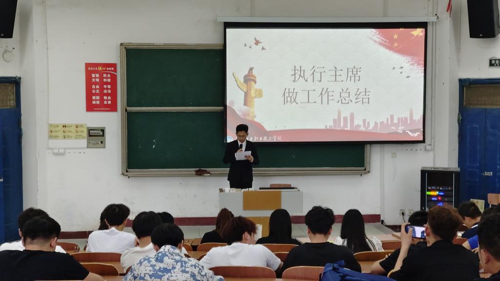 本次换届大会在庄严的国歌声中拉开帷幕,梁军萍为本次大会致开幕词,第16届分团委学生会执行主席曹海江、分团委副书记李建涛分别对2022-2023学年各方面工作进行了总结。之后,参与竞选的竞选者依次走上讲台,就各自的基本情况、对工作岗位的认识及工作设想做竞选演讲,充分展示了各自己的优势和今后如何为全院师生服务的信心和决心,整个现场气氛紧张而又热烈,48位候选人的精彩演讲和出色表现赢得在场师生热烈的掌声。