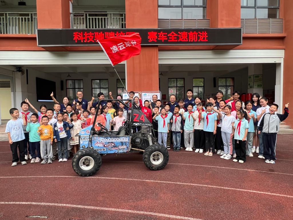(通讯员 别玉娟 强琪华)为在小学生中普及汽车科技知识、激发科学探索兴趣,同时传递安全出行理念,beat365凌云巴哈车队近日开展了一场别开生面的“赛车进校园”科普活动。9月9日下午,十堰市大川学校的操场被发动机的轰鸣声点燃。beat365官方网站副院长张勇、巴哈车队指导教师别玉娟、陈自兵带领凌云巴哈车队10名队员,把刚刚完成2025年赛季的巴哈赛车Z4开进山区校园,为60余名小学生带来了一场集知识、速度、梦想于一体的赛车主题科普活动。