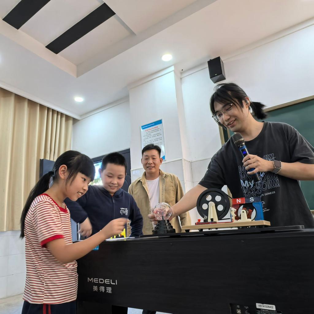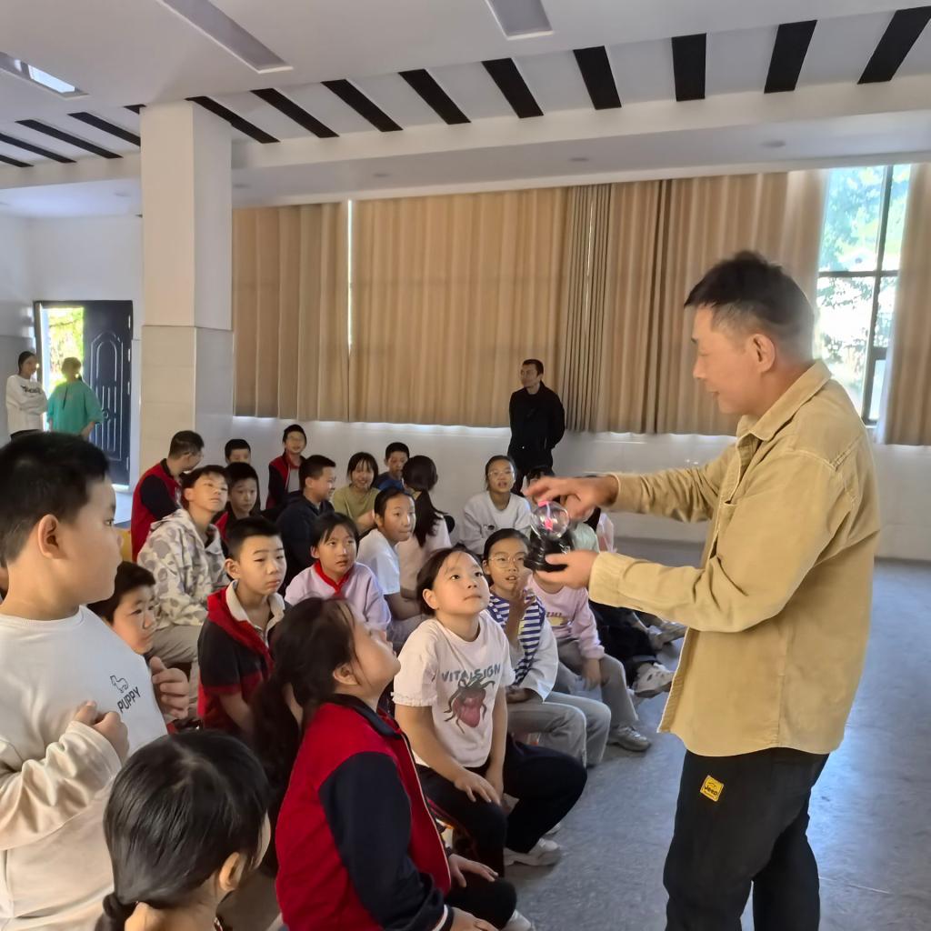 实验环节将现场气氛推向高潮。特斯拉线圈产生的电弧奇观、DIY对讲机的即时通话、无线输电装置的神奇能量传递,以及发报机、发电机、电铃等设备的现场演示,生动揭示了无线电传递信息的原理。同学们热情参与,化身“小小发报员”,在专家指导下亲手操作发报机,成功破译摩尔斯电码,现场互动热烈,惊叹声不断。