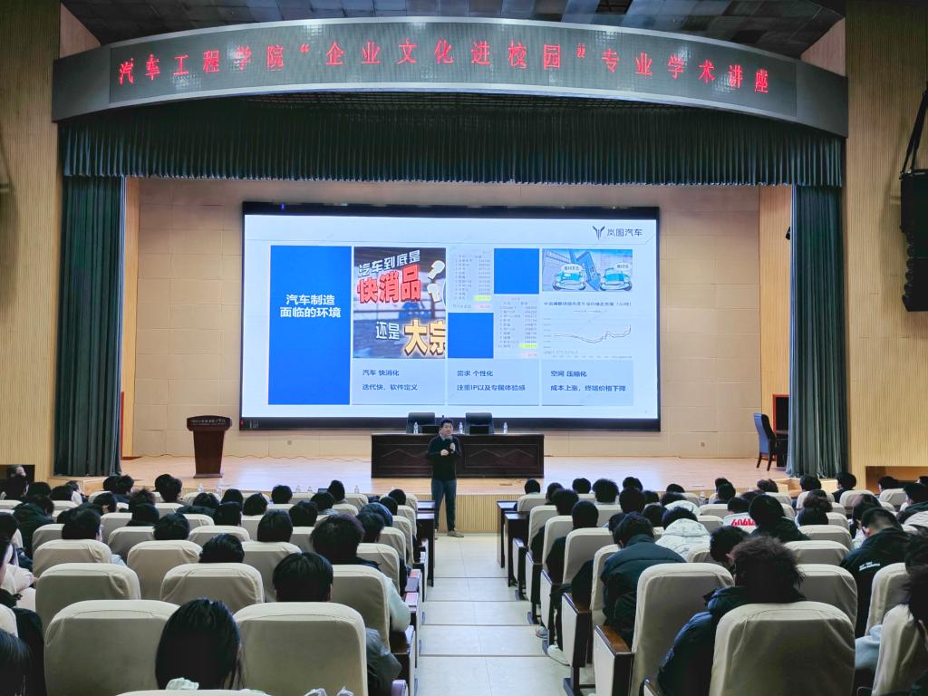 (通讯员李路)为进一步深化产教融合,引导师生了解行业动态,服务区域经济发展,beat365官方网站于12月5日举办“企业文化进校园”系列讲座。与学院长期以来保持紧密合作的企业——岚图汽车科技股份有限公司的两位资深专家应邀分别就汽车产业未来趋势与职场角色转换两大主题进行深度分享。院长赵艳杰主持活动,全院师生共同参与。
