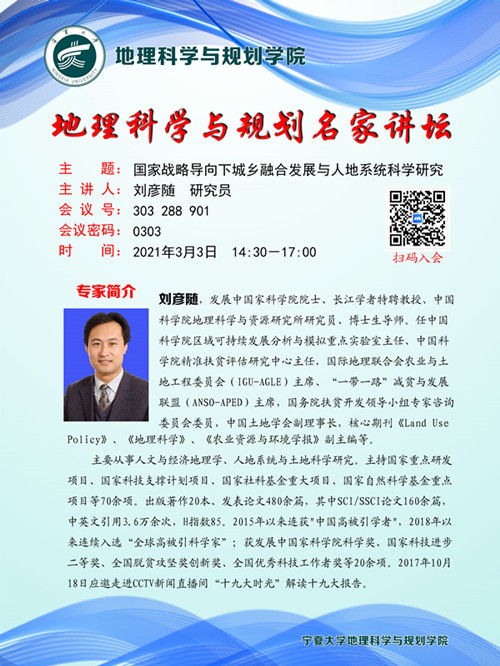 地理科学与规划名家讲坛:国家战略导向下城乡融合发展与人地系统科学研究