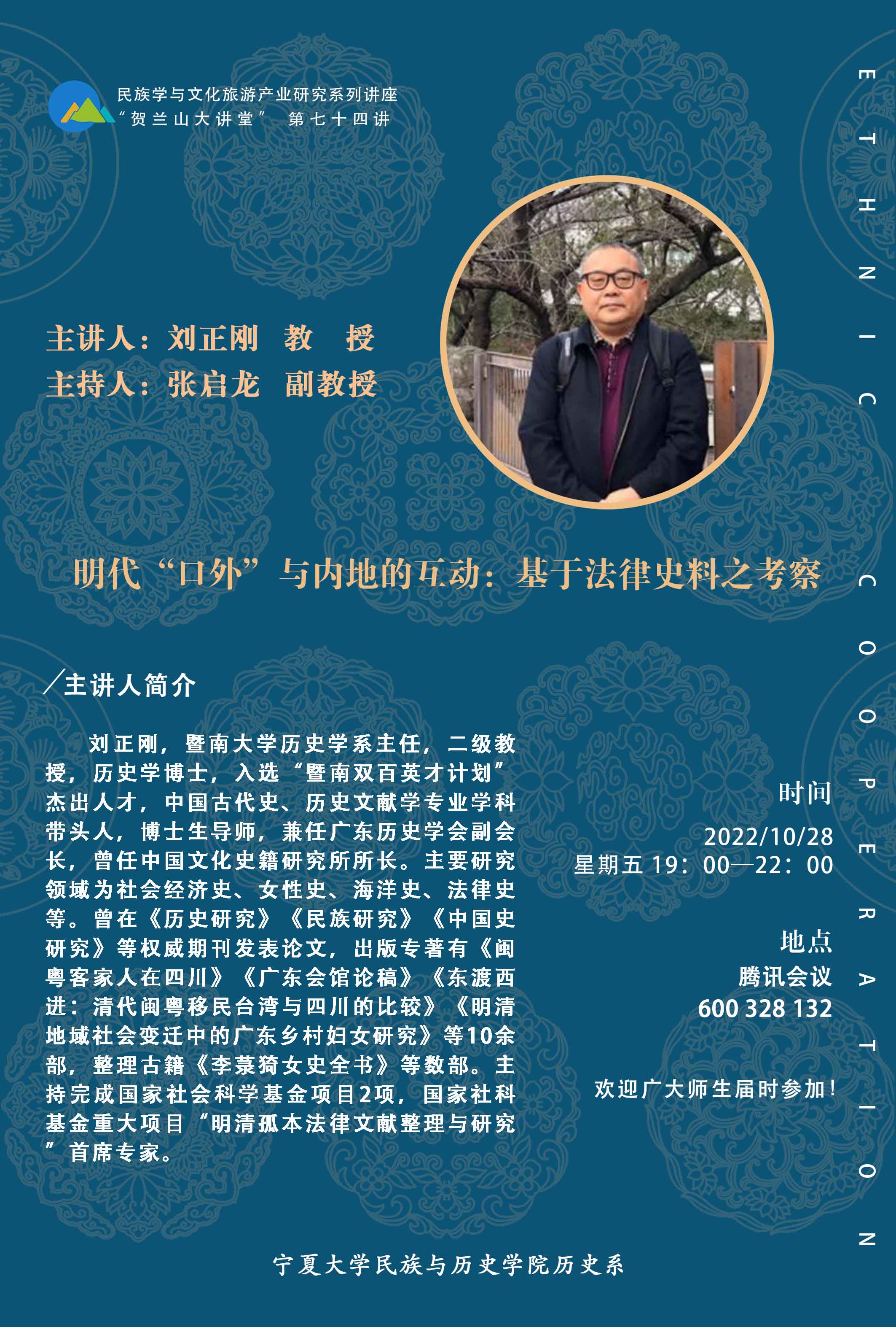 刘正刚,暨南大学历史学系主任,二级教授,历史学博士,入选“暨南双百英才计划”杰出人才,中国古代史、历史文献学专业学科带头人,博士生导师,兼任广东历史学会副会长,曾任中国文化史籍研究所所长。主要研究领域为社会经济史、女性史、海洋史、法律史等。曾在《历史研究》《民族研究》《中国史研究》等权威期刊发表论文,出版专著有《闽粤客家人在四川》《广东会馆论稿》《东渡西进:清代闽粤移民台湾与四川的比较》《明清地域社会变迁中的广东乡村妇女研究》等10余部,整理古籍《李菉猗女史全书》等数部。主持完成国家社会科学基金项目2项,国家社科基金重大项目“明清孤本法律文献整理与研究”首席专家。