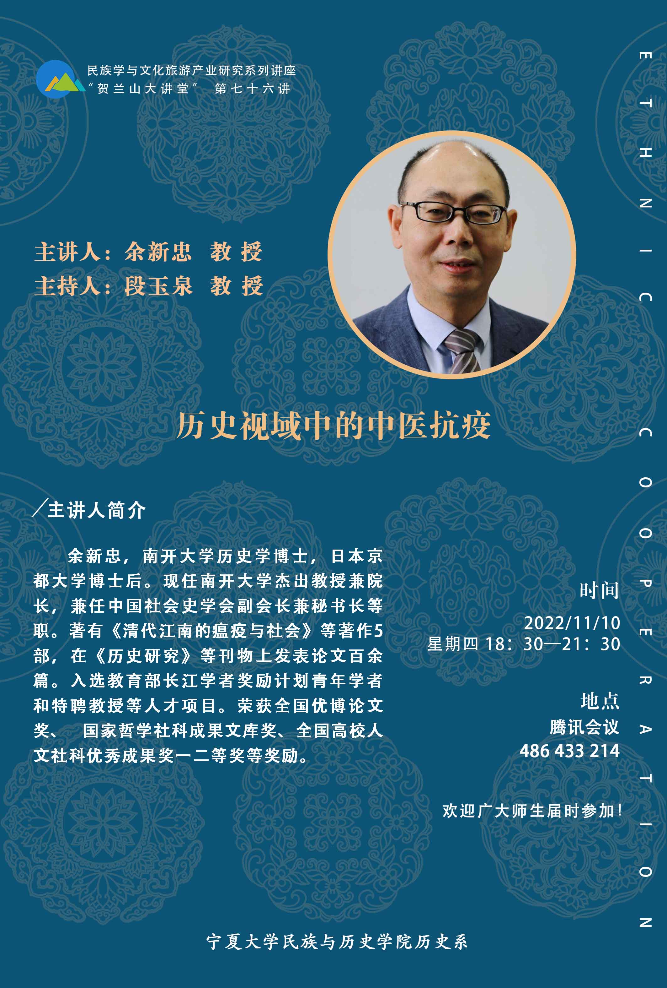 余新忠,南开大学历史学博士,日本京都大学博士后。现任南开大学杰出教授兼院长,兼任中国社会史学会副会长兼秘书长等职。著有《清代江南的瘟疫与社会》等著作5部,在《历史研究》等刊物上发表论文百余篇。入选教育部长江学者奖励计划青年学者和特聘教授等人才项目。荣获全国优博论文奖、 国家哲学社科成果文库奖、全国高校人文社科优秀成果奖一二等奖等奖励。