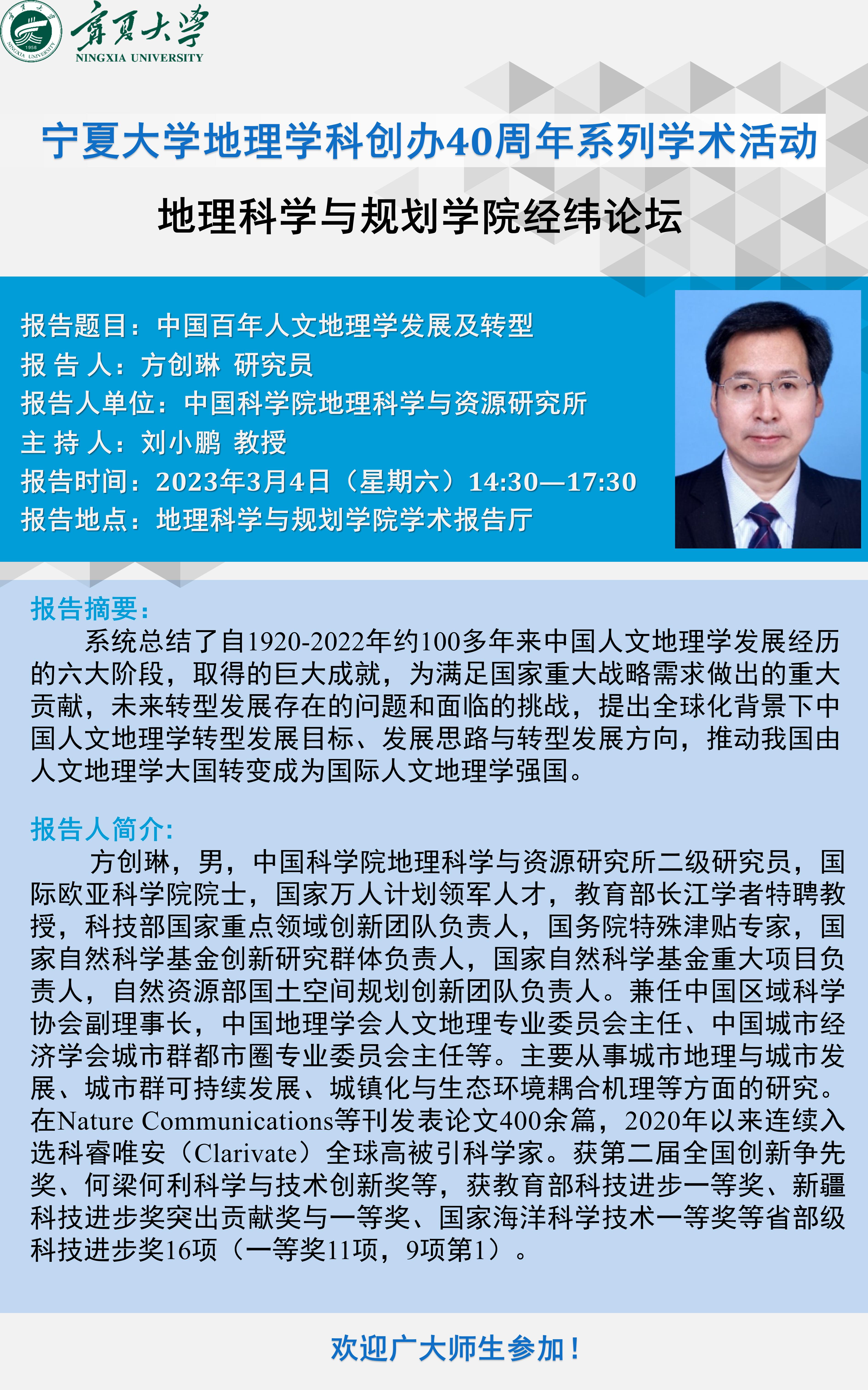 地点:地理科学与规划学院学术报告厅