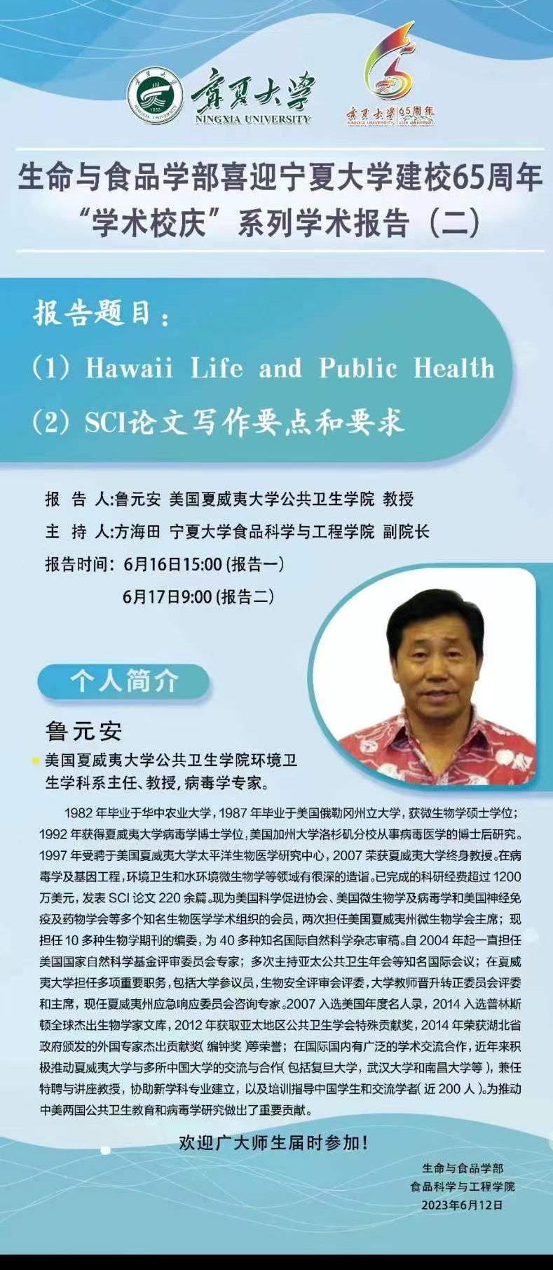 报告人:鲁元安 美国夏威夷大学公共卫生学院教授