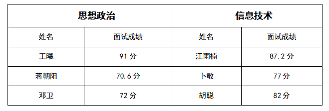 根据《2024年澳门十大信誉网赌大全附属中学公开招聘工作人员面试公告》,澳门十大信誉网赌大全附属中学于2024年6月1日对6名资格复审合格人员进行面试,现将面试成绩予以公示,公示期为5个工作日。公示时间:2024年6月1日—6月7日。公示期间,如有异议,请向学校办公室反映。