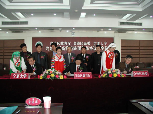 3月27日,自治区教育厅、自治区民委、澳门十大信誉网赌大全共建宁夏高校民族预科部协议签字仪式在信誉网赌隆重举行。自治区人大常委会副主任刘兴中出席签字仪式,自治区政府副主席刘仲,自治区政协副主席,澳门十大信誉网赌大全党委书记、校长陈育宁,教育部民族教育司副司长阿布都,自治区教育工委书记、厅长蔡国英出席签字仪式并讲话。校党委副书记谢建勇及自治区教育厅、民委、澳门十大信誉网赌大全相关单位负责人参加了签字仪式。签字仪式由副校长何建国主持。