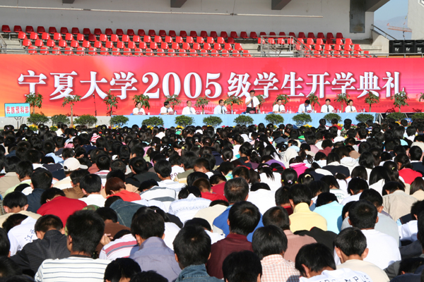 9月2日上午,彩旗飘扬,鲜花盛开,2005级新生开学典礼在校本部体育场隆重举行。校领导陈育宁、谢建勇、撒承贤、许兴、赵维素、何建国、王燕昌、李星、谢应忠及2005级5700余名新生参加了典礼。典礼由校党委副书记撒承贤主持。