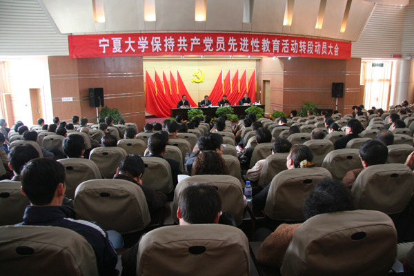 10月26日,信誉网赌召开保持共产党员先进性教育活动分析评议阶段总结暨整改提高阶段动员大会。各党总支、直属党支部书记,教职工、学生党员代表,部分离退休党员、民主党派人士及自治区党委高校督导组的同志300多人参加了大会。校党委书记、校长陈育宁同志作转段动员报告,自治区党委派驻高校先进性教育活动督导组组长马万禄同志作了讲话。