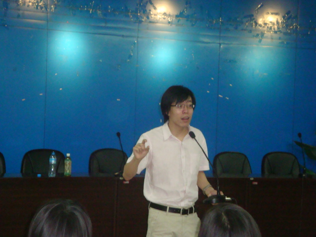 6月11日晚7时,北京新东方学校听力口语部资深讲师杨李亲临外国语学院403室,以轻松幽默的讲授风格,与同学们一同分享了英语听力与口语学习中的快乐。杨李老师以“学习英语的目的”为题开场,使现场气氛顿时变得活跃起来。随后,他结合中国学生英语学习的现状,分析了听说在语言学习中的重要作用,并针对听力与口语,就自身学习经验,向同学们提出了三条英语听说能力提高的小贴士,即练胆儿,参与English Corner并成为主角,有选择地学习英文原声电影。杨老师针对同学们在英语听说训练中出现的误区、盲区,提出了具体的改进措施,并就英语学习向同学们提出了衷恳的意见与建议。在热烈的掌声中,历时两天的新东方英语学习系列讲座在热情地参与、高度地肯定中成功落幕。此次讲座是北京新东方学校在自治区内唯一的两场讲座,到场同学均获赠了新东方英语学习的相关CD或书籍。