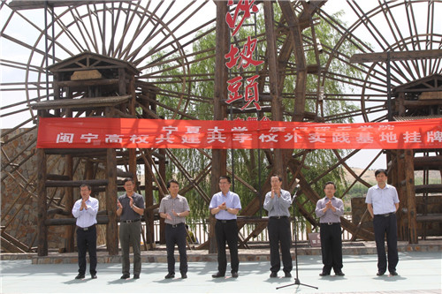尤国顺与周运生代表两校为实践基地揭牌。苏海涛向沙坡头景区授牌。