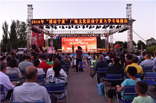 【澳门十大信誉网赌大全新闻中心讯 徐静/文 龚旭峰/图】6月12日晚,由自治区党委宣传部、自治区文明办、自治区文化厅、自治区财政厅、自治区国防办联合主办的2016年“清凉宁夏”广场文化活动之“青春宁大·多彩宁夏”澳门十大信誉网赌大全专场文艺晚会在银川市光明广场精彩上演。校党委副书记赵利宁,学校相关部门负责人及近千名市民观看了演出。