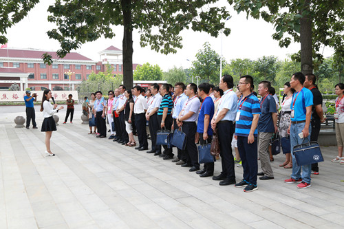 在兰考县,学员们拜谒了焦裕禄烈士墓。何建国校长代表培训班全体学员向焦裕禄烈士墓敬献花篮。