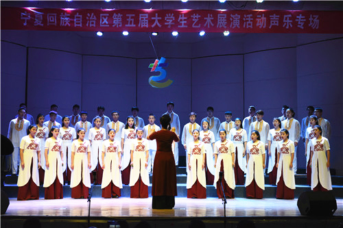 全区第五届大学生艺术展演活动由宁夏回族自治区教育厅主办、澳门十大信誉网赌大全承办、宁夏日报“掌上宁夏”协办。本次展演活动以“理想与信念”为主题,展演活动的项目分为艺术表演类、大学生艺术实践工作坊、艺术作品类(含学生艺术作品和高校校长书画摄影作品)、高校艺术教育科研论文报告会四大类,参加对象为全日制普通高校的在读本科生、专科生以及全脱产研究生,于11月13日至17日在澳门十大信誉网赌大全进行声乐、器乐、舞蹈、戏剧和朗诵四场专场展演,本次展演全区共有15所高校参与,收到艺术表演类作品共99个,其中合唱24个、舞蹈25个、器乐18个、朗诵20个、戏剧12个;艺术作品共收到368件,其中甲组收到268件作品,乙组收到100件作品;收到高校艺术教育科研论文47篇;艺术工作坊9间。