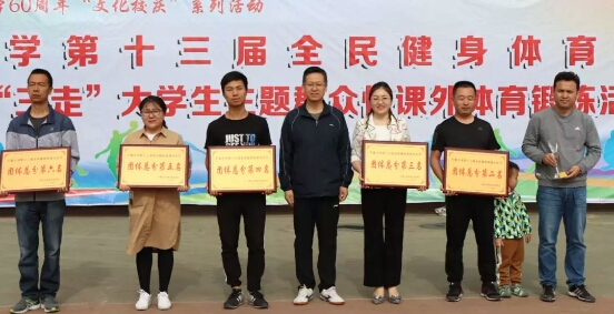 开幕式上,出席领导为学校第十二届全民健身文化节中获得集体项目比赛的获奖单位,道德风尚奖获奖单位和总分前六名的单位、学院颁奖,全场观众用此起彼伏的欢呼声表达获奖的激动心情。