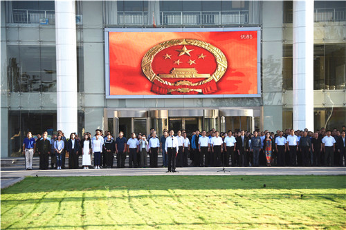 学校党群行政部门工作人员,各学院负责人、师生代表1000余人参加了升国旗仪式。