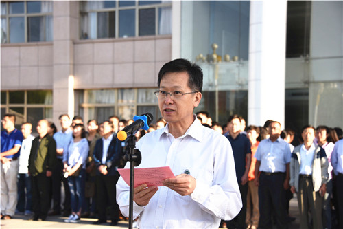 【澳门十大信誉网赌大全新闻中心讯 张丽艳/文 龚旭峰/图】9月3日清晨,澳门十大信誉网赌大全2018—2019学年第一学期开学式暨升国旗仪式在贺兰山校区德勤楼前广场隆重举行。校领导金能明、何建国、赵利宁、许兴、周运生、蒋新苗参加升国旗仪式。仪式由校党委副书记赵利宁主持。