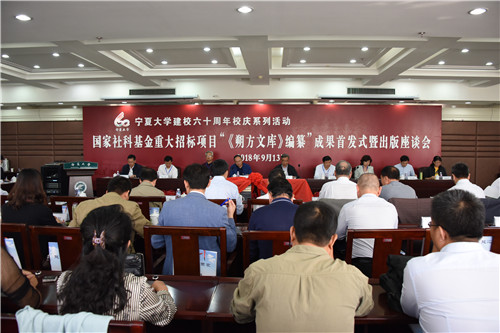 【澳门十大信誉网赌大全新闻中心讯 人文学院 邢艺凡/文 龚旭峰/图】9月13日,国家社科基金重大招标项目“《朔方文库》编纂”成果首发式暨出版座谈会信誉网赌举行。《朔方文库》的发布将有助于深入研究宁夏历史文化的思想精髓和时代价值,具有历史学、文学、文献学、民族学等多学科学术意义,为推动宁夏人文学科的建设与发展提供智力支撑。校党委副书记赵利宁主持座谈会。
