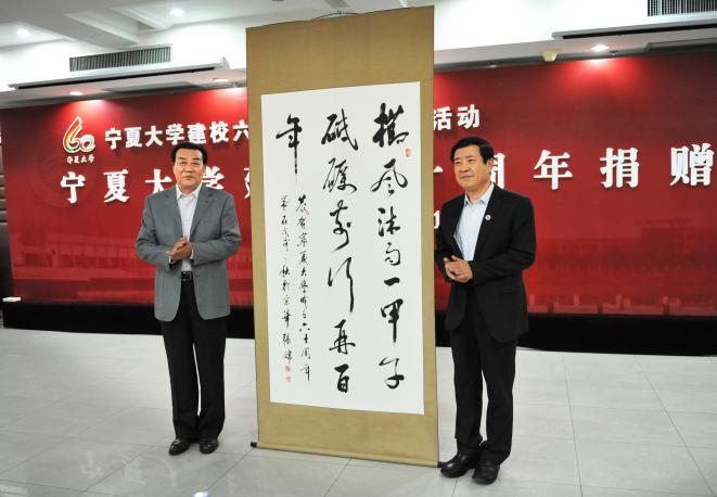 新华书画院院长,新华社原党组成员、秘书长张锦向学校捐赠字画,内容为“栉风沐雨一甲子,砥砺前行再百年”, 表达了对母校的由衷敬意和良好祝愿。