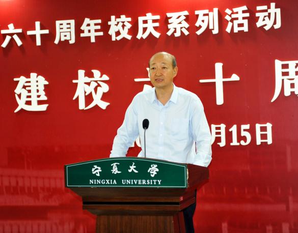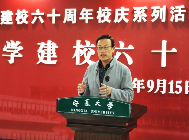 宁夏中房集团董事长、总裁方陆代表捐赠校友讲话。他表示以拥有“宁大人”这张名片而骄傲和自豪,将会继续努力,争取为母校、为社会多做贡献。他还表示,将代表所在班级向母校捐赠一座湖心亭,表达对母校的感激之情。
