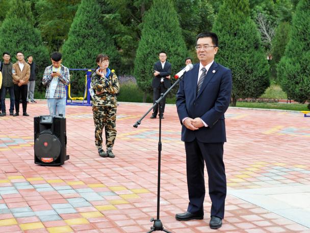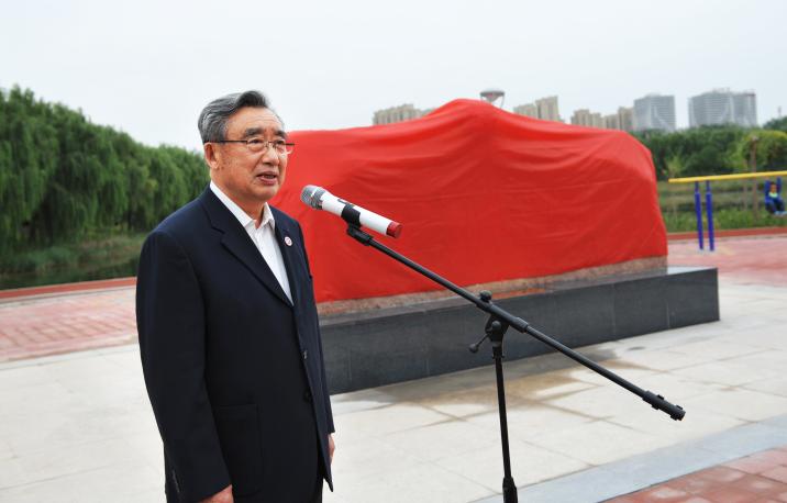揭幕现场,陈育宁教授谈到:“历经数年变化,今天佩戴着校徽,感觉自己从未离开,学校发展和老师同学们的精神面貌令人鼓舞。有幸为校歌石题字,愿同学们走进校园,看到的就是一个正气的环境。”陈育宁教授在现场作诗一首,“桩打荒滩谋大厦,风棘沙枣变芳华,细雨点点盈盈绿,甲子一度再辉煌。”表达了对学校发展的真切祝福。