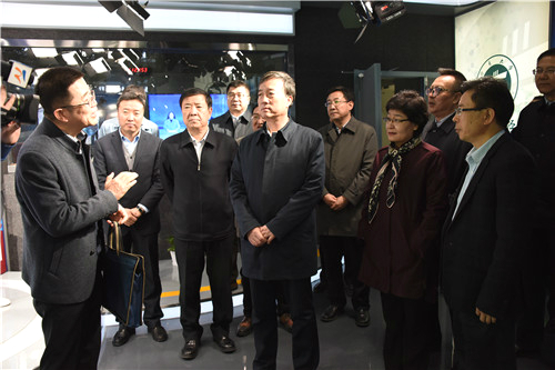赵永清一行参观了融合媒体实验室,深入了解新闻传播学院当前基础设施情况,并召开座谈会。