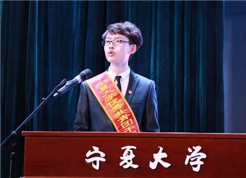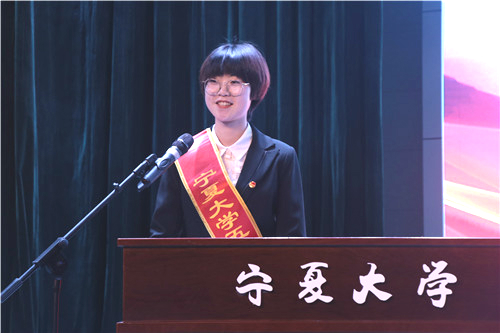 优秀共青团干部代表蒋宇欢在发言中表示认:“我们将对标‘可信、可敬、可靠,乐为、敢为、有为’的标准,敢于担当,乐于担当,做担当的时代先锋和表率,努力为学校‘双一流’建设贡献自己青春力量。”