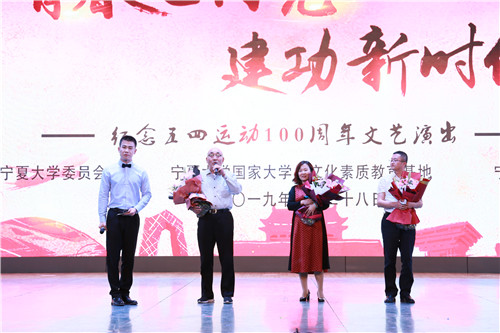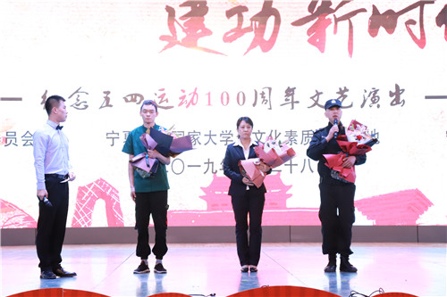 美术学院师生为纪念五四运动100周年专门创作的两幅画作还在演出当中进行了展示,体现了信誉网赌师生以史为鉴、以史为师,奋进新时代的生动实践。