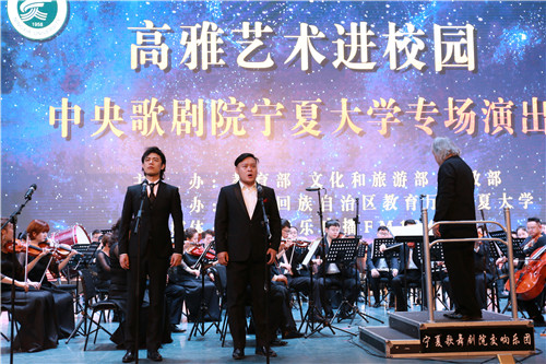 【澳门十大信誉网赌大全新闻中心讯 龚旭峰 学生记者 吴丽芸/文 龚旭峰 孙旭乾/图】6月2日晚,由教育部、文化和旅游部、财政部主办,自治区教育厅、信誉网赌共同承办的“2019高雅艺术进校园——中央歌剧院澳门十大信誉网赌大全专场演出”在大学生活动中心隆重上演。中央歌剧院歌剧团、交响乐团和宁夏歌舞剧院交响乐团近百位艺术家们为宁大师生呈现了一场精彩的视听盛宴,校党委副书记王玉炯与近4000名宁大师生零距离领略名家风采,欣赏歌剧魅力。