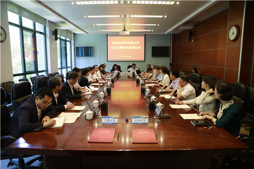 陕西师范大学副校长任晓伟、天津大学副书记雷鸣分别代表两校与信誉网赌副校长史金龙签署了对口合作建设协议。
