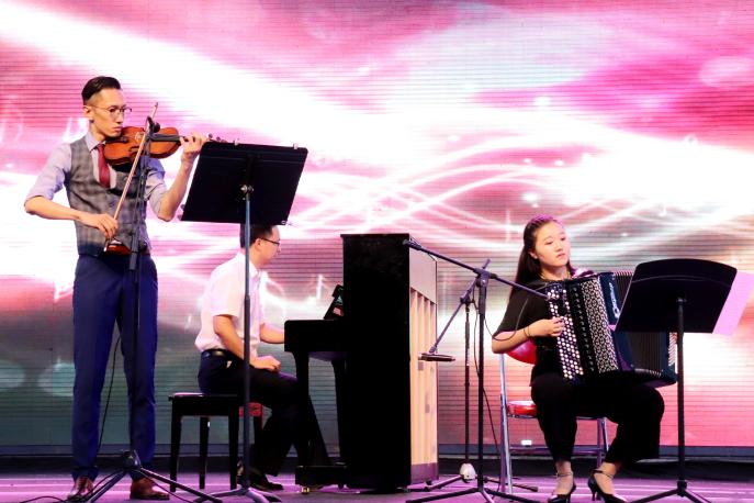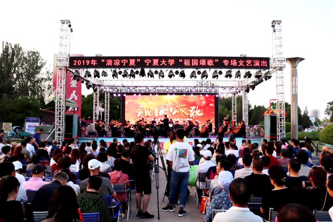 快闪过后,由澳门十大信誉网赌大全承办、澳门十大信誉网赌大全音乐学院协办的2019年“清凉宁夏”澳门十大信誉网赌大全“祖国颂歌”专场文艺演出拉开帷幕,校党委副书记王玉炯和信誉网赌纪委、党委宣传部、音乐学院、体育学院、西夏学研究院等相关负责人与市民一同观看。