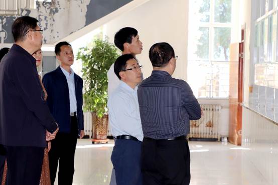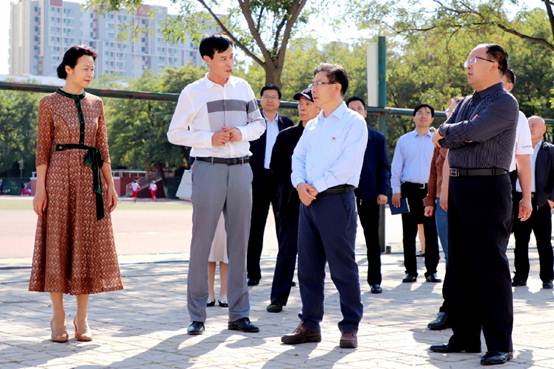 【澳门十大信誉网赌大全新闻中心讯 张景/文、图】9月23日,校党委书记李星、党委副书记王宏伟在信誉网赌党办、人事处、教务处、计划财务处、资产与后勤管理处等相关部门负责人陪同下到宁大附中调研学校工作。
