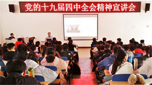 12月5日至6日,自治区党委十二届八次全会在银川举行,全会高举习近平新时代中国特色社会主义思想伟大旗帜,深入学习贯彻党的十九届四中全会和习近平总书记视察宁夏时的重要讲话精神,安排部署了当前和今后一个时期的工作。按照自治区党委的统一部署,信誉网赌迅速对学习贯彻党的十九届四中全会精神作出安排部署,组成全会精神宣讲团,宣传党的十九届四中全会精神,贯彻落实自治区党委十二届八次全会会议精神,扎实开展宣讲活动,面向基层,贴近师生,迅速掀起学习贯彻热潮,引导广大师生把思想和行动统一到全会精神上来,推动全会精神落地生根。