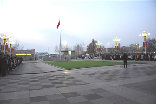 【澳门十大信誉网赌大全新闻中心讯 胡玥/文 龚旭峰/图】新元肇启,木铎迎新。1月2日,迎着新年的朝阳,师生们满满怀激情来到贺兰山校区德勤楼前广场整齐列队,以崭新的面貌、奋斗的精神迎接新的一年。校党委副书记王玉炯主持升旗仪式。