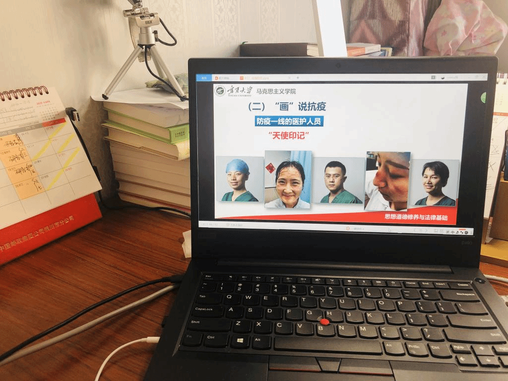 在《毛泽东思想和中国特色社会主义理论体系概论》第一课中,任课教师针对当前防疫抗疫新形势结合防疫抗疫中涌现的典型人物和事例,重新定义偶像、呼吁关爱人民、关注家庭、关注身心健康,课堂内容明亮而温暖,颇具感染力;任课教师通过对中国速度、中国奇迹、中国精神为学生梳理、总结疫情背后的故事,让学生深刻感受到在这场疫情面前,中国的制度优势和制度自信;任课教师老师在开课前预留给学生课前作业“谈谈你在此次疫情过程中的触动和思考是什么?”结合学生的回答,讲了三个关键词“感动、读懂、反思”,在讲解过程中,感同身受,难以自已,数度留下热泪,学生深受感染,发弹幕询问、安慰,令人感慨。