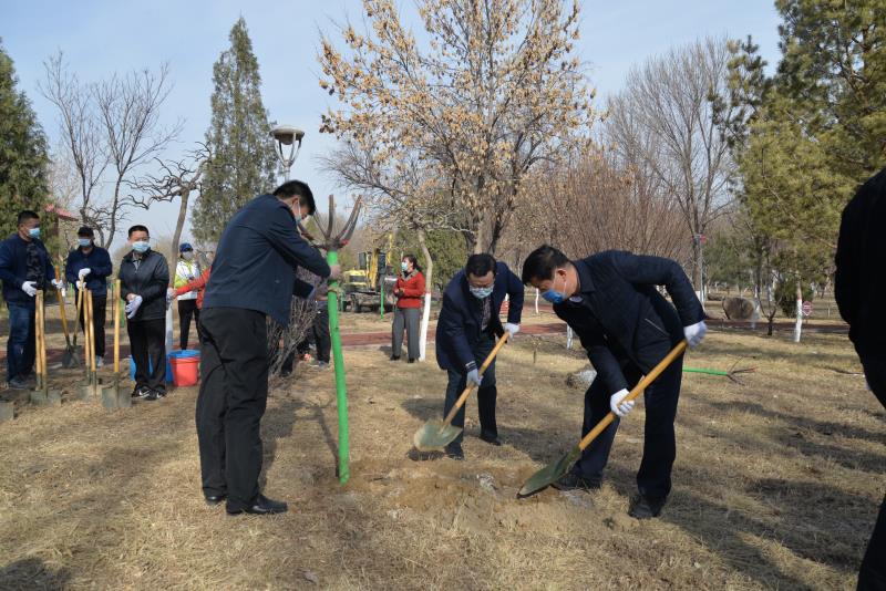 在植树现场,校领导身先士卒,参加植树的人员自由组合,或两人配合,或三人一组,大家自觉佩戴口罩,拿起铁锹,挽起袖子,按区域分散种植,剖土栽苗,松土浇水,认真细致地栽下每一棵树苗。经过大家的共同努力,一棵棵樱花树亭亭玉立于春日阳光中。每一颗栽种的樱花树都用劳动的汗水浇筑,大家播种希望,不仅希望树木成材,而且希望疫情早点结束,让师生团聚在春暖花开的校园,畅享满园春色,共同擘画绿色校园发展新蓝图。
