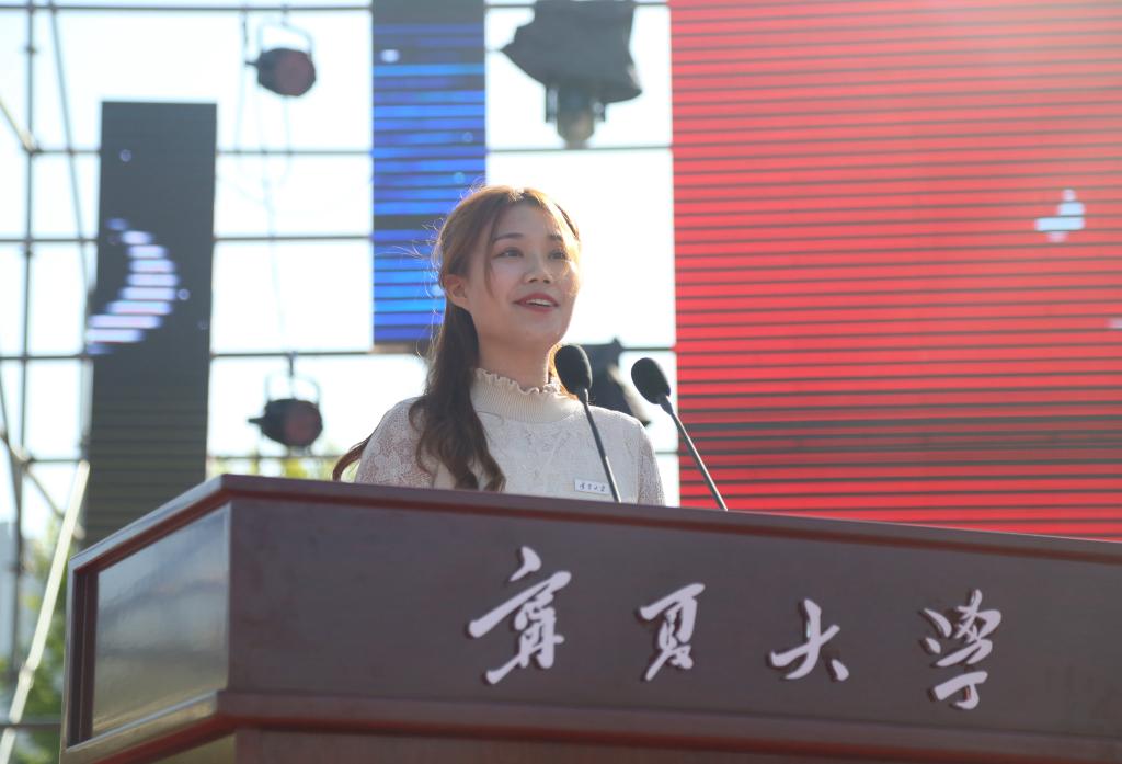 站在已然开启的未来大门前,土木与水利工程学院史龙和中卫校区文化旅游学院张刚代表新生表达了以宁大人的新身份来拥抱新知、探寻梦想的欣喜,并郑重承诺,将以“尚德勤学,求是创新”的宁大校训和“沙枣树”精神为行事准则和奋斗目标,以接好一代代宁大人手中的接力棒为义不容辞的使命,练就过硬本领,锤炼道德修养,勇担时代重任,不怕挫折、不惧挑战、持续奋斗,在火热的青春中放飞人生梦想,在拼搏的青春中成就人生华章,为学校发展、祖国繁荣贡献自己的青春力量。