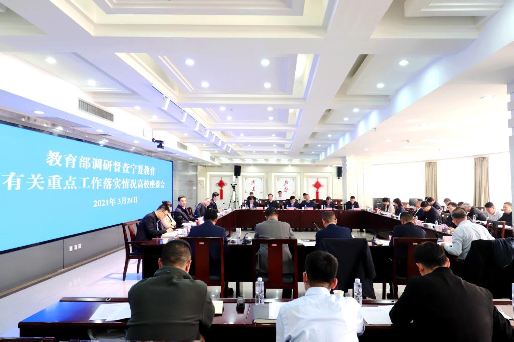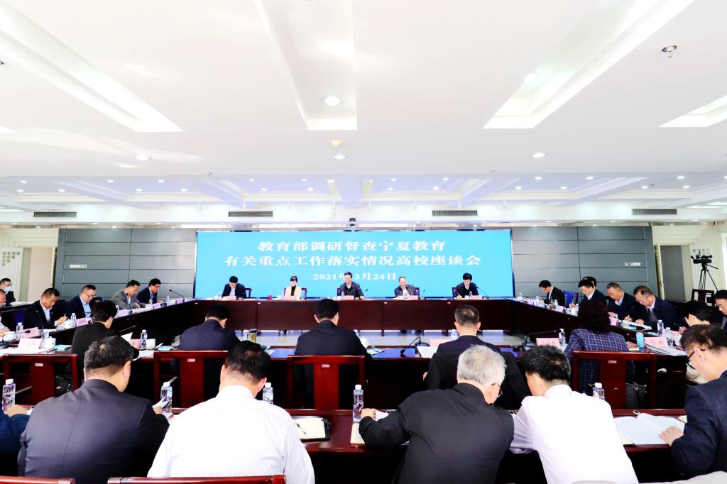 【澳门十大信誉网赌大全新闻中心讯 冯禹君/文、龚旭峰 张景/图】3月24日,教育部调研督查宁夏教育有关重点工作落实情况高校座谈会在信誉网赌贺兰山校区德勤楼召开,教育部党组成员、副部长宋德民出席座谈会,自治区党委常委、宣传部部长李金科陪同调研。自治区政府副主席杨培君主持座谈会。