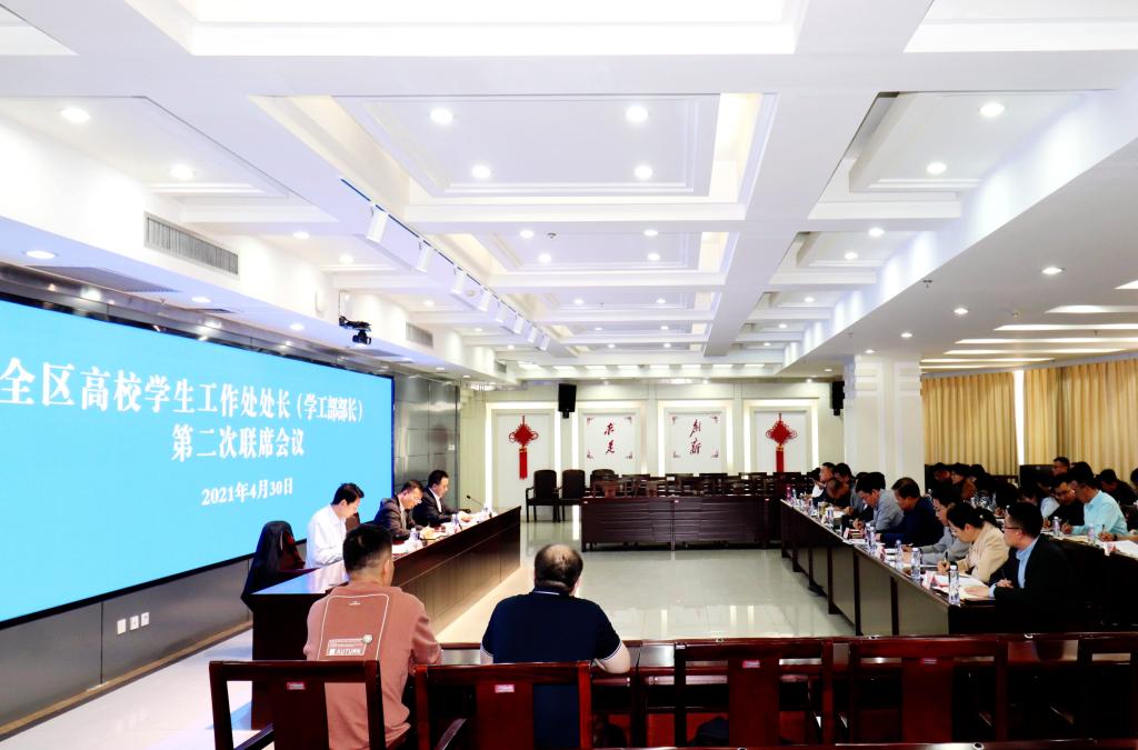 全区高校宣传部部长、学生工作处(思想政治处)处长,自治区教育工委、教育厅相关处室负责同志参加会议。