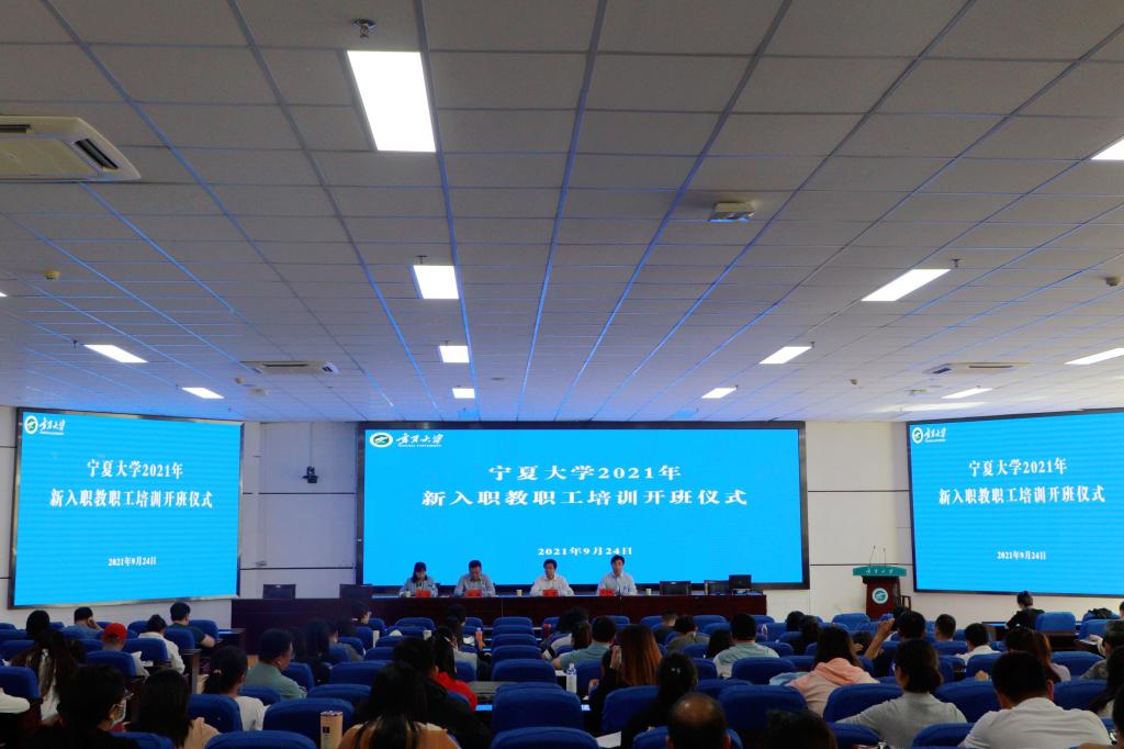 【澳门十大信誉网赌大全新闻中心讯 教师教学发展中心/文 王文娣/图】9月24日,信誉网赌2021年新入职教职工培训开班仪式在贺兰山校区文荟楼报告厅举行。校党委常委、副校长周震出席会议,人事处处长李学斌主持开班仪式。