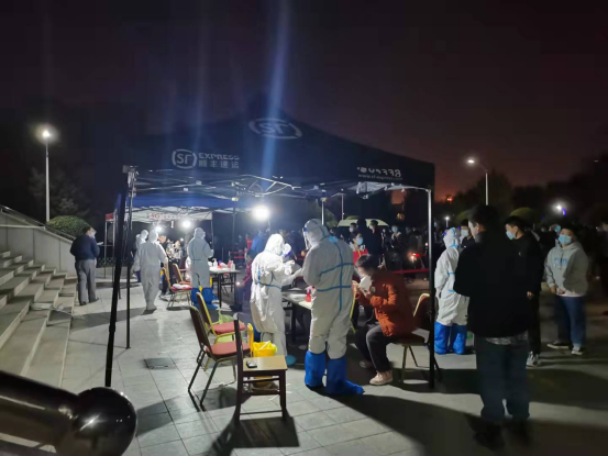医疗保健服务中心迅速反应,多方联系储备防控物资,严格把控物资的购进、验收、发放记录等环节。根据学校疫情防控要求,10月23日至24日为全体学生及在校在岗的教职工进行全面核酸检测;10月22日凌晨,医保中心工作人员排队2小时领取政府分配学校进行核酸检测的相关物资;10月23日后勤保障部全员出动,紧锣密鼓地投入到服务广大师生核酸检测的工作之中。在全体宁大后勤人的共同坚守下,本着“应检尽检”的原则,历经16个小时有序完成18911份核酸采样。