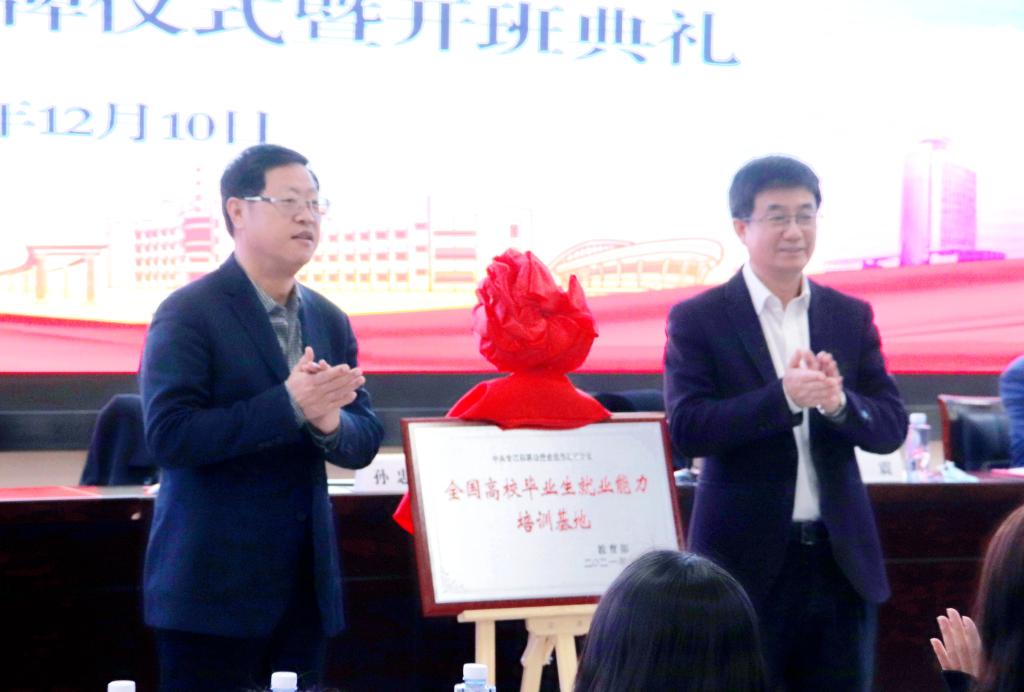 典礼上,孙忠铭和周震共同为澳门十大信誉网赌大全“全国高校毕业生就业能力培训基地”揭牌,王思旭宣读了教育部办公厅《关于实施宏志助航计划全国高校毕业生就业帮扶项目的通知》,与会领导为培训讲师和班主任代表颁发了聘书,并发放了学员工具包。