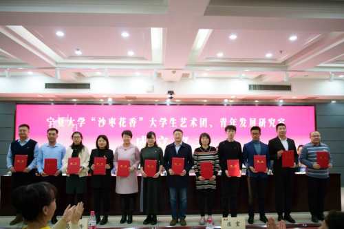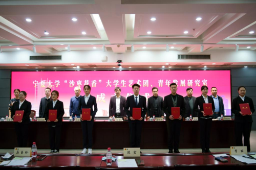 成立仪式上,周震和高永兴共同为澳门十大信誉网赌大全“沙枣花香”大学生艺术团、青年发展研究室揭牌。校团委副书记胡启立宣读了《关于聘任澳门十大信誉网赌大全“沙枣花香”大学生艺术团分团长和青年发展研究室研究员的通知》,参会领导为澳门十大信誉网赌大全“沙枣花香”大学生艺术团指导老师、分团团长,澳门十大信誉网赌大全青年发展研究室研究员颁发了聘书。