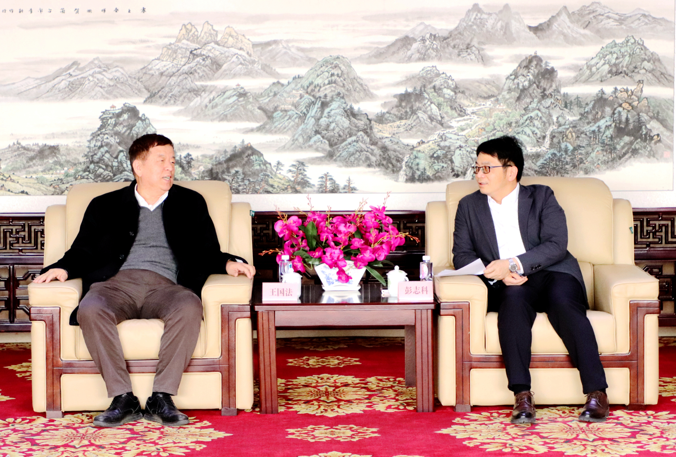 彭志科在德勤楼12楼贵宾室会见了王国法一行,他对王国法一行来校访问交流表示欢迎,并介绍了学校在学科发展、科学研究等方面的基本情况。双方对当前煤矿行业的发展进行了探讨,希望在人才培养、科学研究、校企合作等方面进一步深入合作,实现互助共赢。