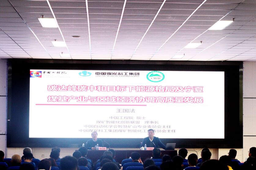 在文荟楼东报告厅,王国法做了题为“碳达峰碳中和目标下能源格局及宁夏煤基产业与区域经济协调高质量发展”的学术报告。报告围绕碳达峰、碳中和目标下的能源与矿业产业格局变化,智能化煤矿与智能柔性煤炭开发和供给体系建设,宁夏煤炭及煤基产业与区域经济协调高质量发展,以及对高校新工科建设、创新能力建设的认识等几方面内容展开,王国法结合自己三十多年来在煤矿综采行业的经验,着重阐述了碳达峰、碳中和背景下煤炭在能源结构中的地位以及宁夏煤炭及煤基产业高质量发展的技术体系与路径。机械工程学院、化学化工学院师生代表现场聆听了报告会。