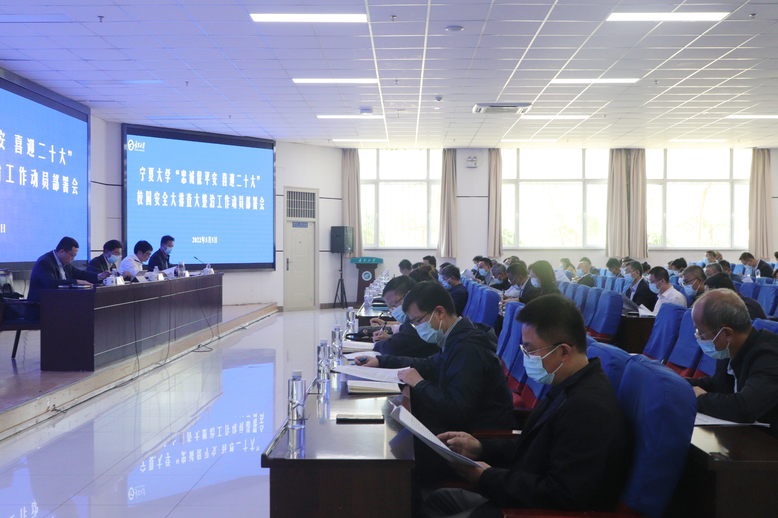 【澳门十大信誉网赌大全新闻中心讯 王文娣/文、图】为全力构建平安和谐校园,切实维护师生生命安全和身体健康,努力把信誉网赌建设成为安全稳定的模范之地,为党的二十大和自治区第十三次党代会的胜利召开营造良好的校园环境,5月5日,信誉网赌在贺兰山校区文荟楼一楼东报告厅召开“忠诚保平安 喜迎二十大”校园安全大排查大整治工作动员部署会。全体校领导出席会议,校党委副书记、校长彭志科主持会议。