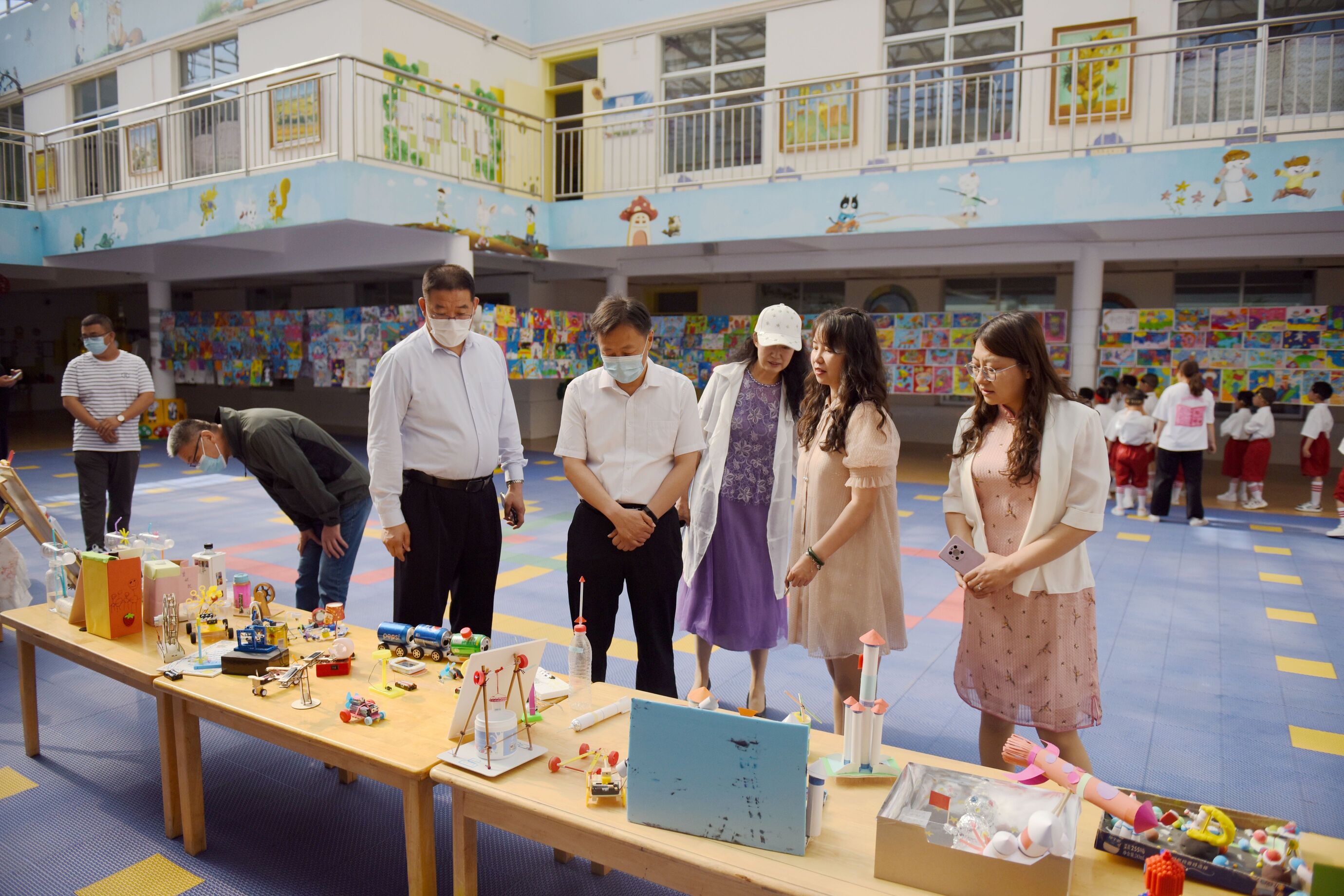 “遇见六一 创想未来”庆“六一”系列活动由美术作品展、亲子图书展、亲子科创制作、升国旗仪式和文艺汇演、趣味游园会等环节组成,充分展现了童真、童趣、童乐。老师们以多元的活动方式带领幼儿在积极参与中体验合作与交往的快乐,让活动成为孩子们成长和发展的过程、成为家长走进童心世界、感悟儿童生命本真的过程。