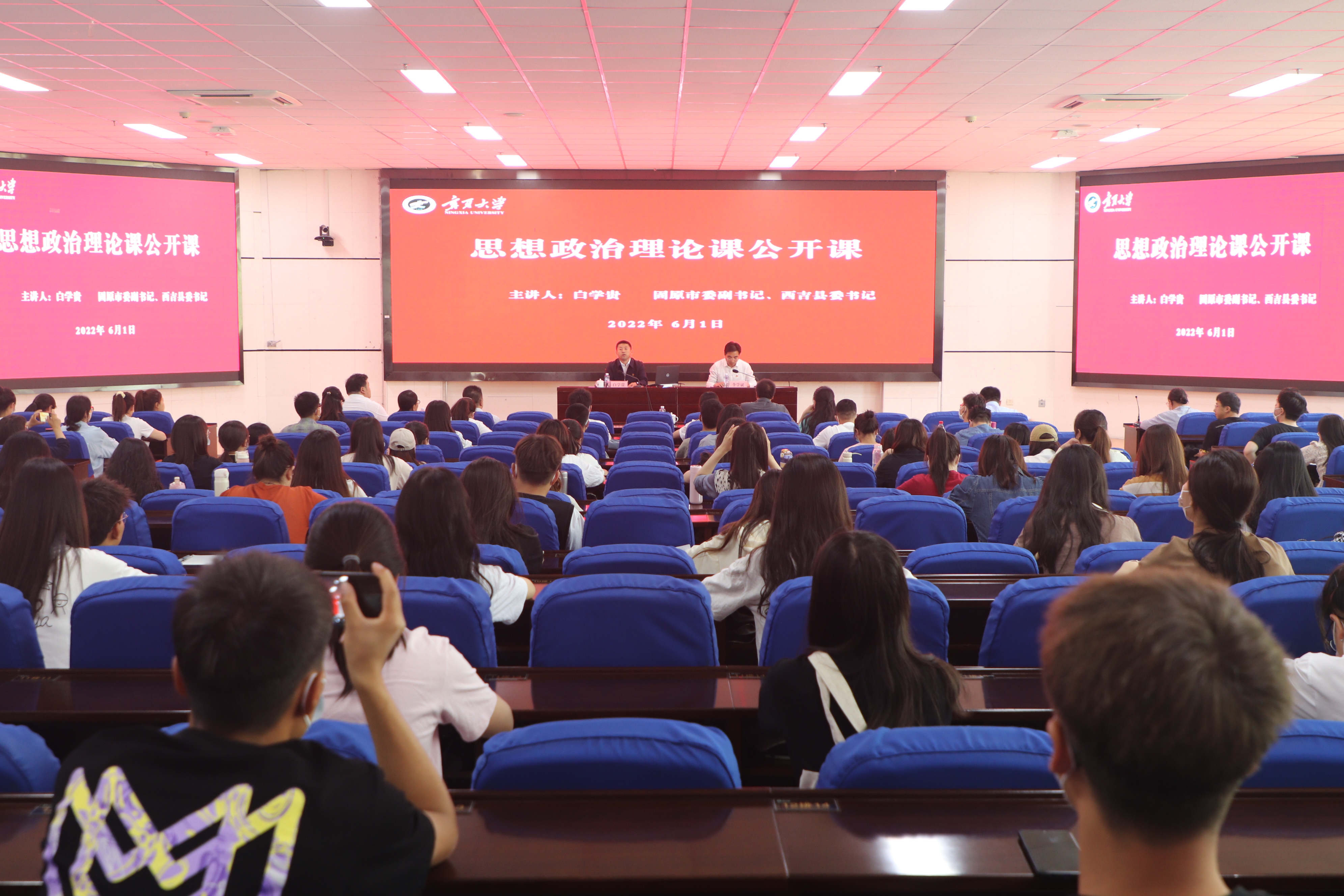 【澳门十大信誉网赌大全新闻中心讯 李明花/文、图】为了深入贯彻落实建设“大思政课”要求,扎实推进习近平新时代中国特色社会主义思想“三进”工作,充分发挥领导干部在宣讲党的基本理论、基本路线、基本纲领、基本经验、基本要求和重大政策上的示范带动作用,进一步增强学校思想政治工作的针对性、实效性,提升思想政治理论课建设水平,影响带动广大青年学生更好成长、更快发展,6月1日,学校特邀固原市委副书记、西吉县委书记白学贵为信誉网赌师生上思想政治理论课公开课,校党委常委、副校长李学斌主持公开课。
